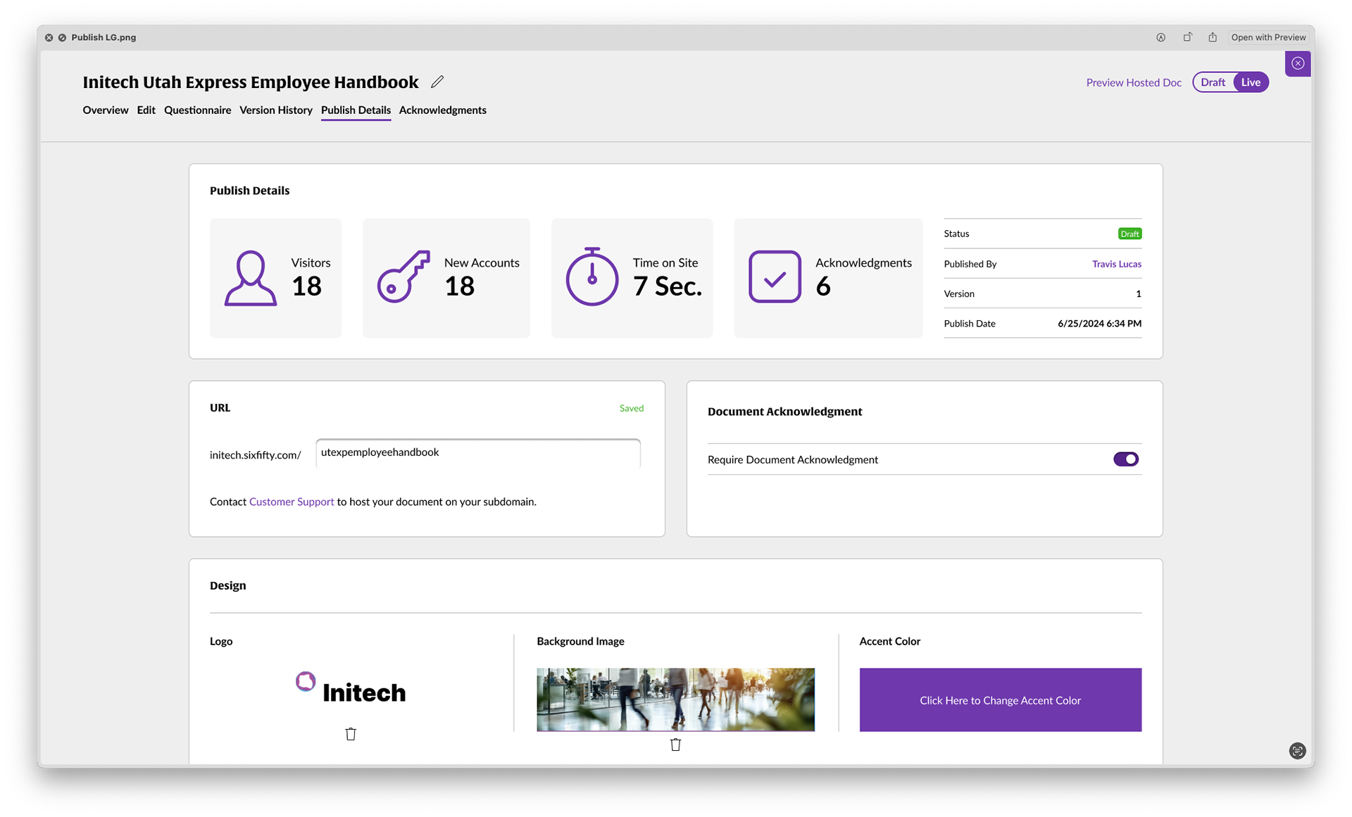 Users wanted to take the creation of their Employee Handbooks one step further by having the ability to not only host their handbook but also gather acknowledgements and monitor employee acknowledgements.