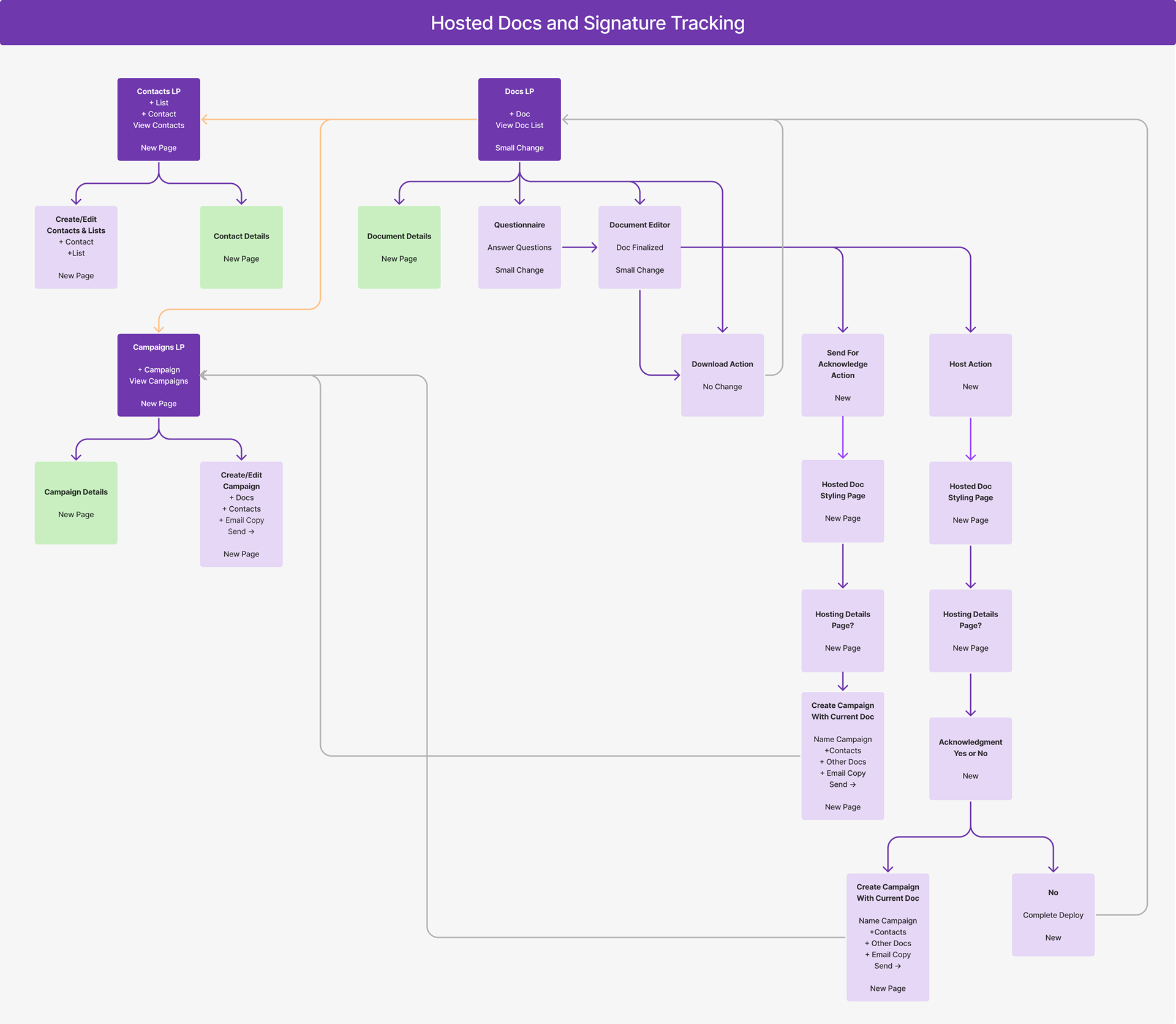 I created this User journey map to show what new pages were needed and what the user could do on that page. It also shows how we integrated the document hub outlined above.